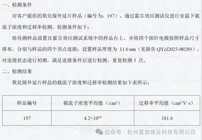 近日,杭州富加镓业科技有限公司(以下简称:富加镓业)在氧化镓MOCVD同质外延技术方面再次取得突破,经国家权威检测机构——中国计量科学研究院测试表明,厚度超10μm的氧化镓同质外延片载流子浓度为4.2E16cm-3,迁移率达到181.6cm2/V·s。基于MOCVD技术的高质量氧化镓同质外延片的研制成功,将有效助力氧化镓高压大功率电力电子器件产业的快速落地。