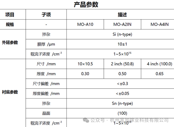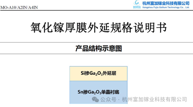2025年3月,富加镓业基于自主生产的氧化镓衬底产品,利用MOCVD技术,已经实现了10μm以上厚度的氧化镓同质外延片迁移率达到172.7 cm2/V·s技术重大突破(富加镓业氧化镓MOCVD同质外延技术取得突破,助力下游垂直功率电子器件产业落地);在此基础上,研究人员进一步优化了MOCVD外延过程中背景杂质控制,精确调控掺杂浓度,提升氧化镓同质外延薄膜质量。相关标准化外延产品(规格书如下)已于2025年6月同步上市,更好服务于氧化镓器件厂家及下游用户。